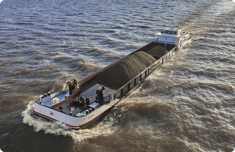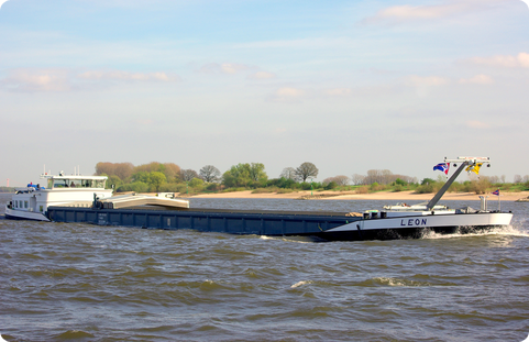 An inland freighter for transport of sand and gravel.