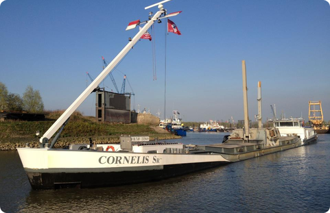New built cargo vessel intended for maintenance of embankments and banks on inland waterways.